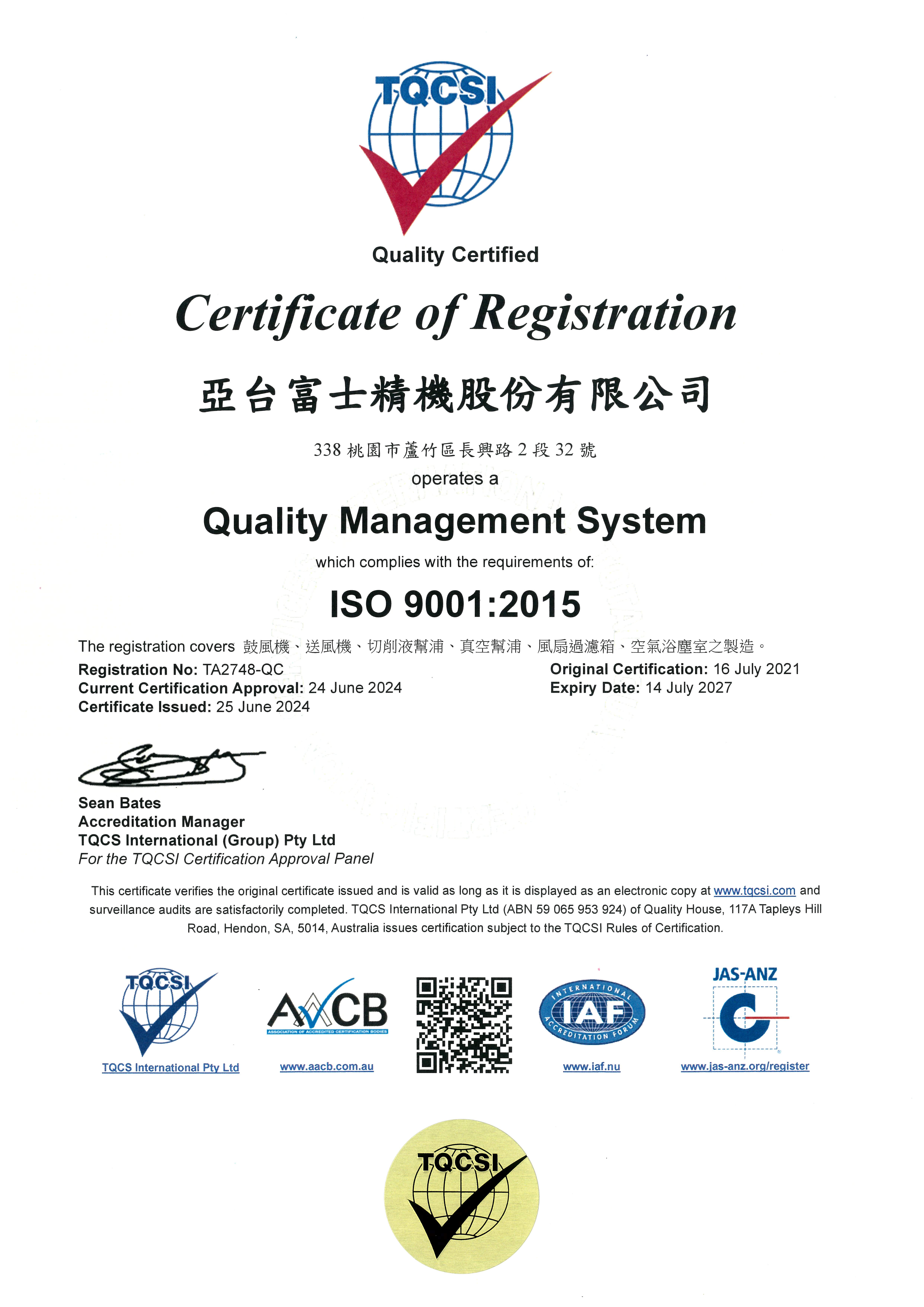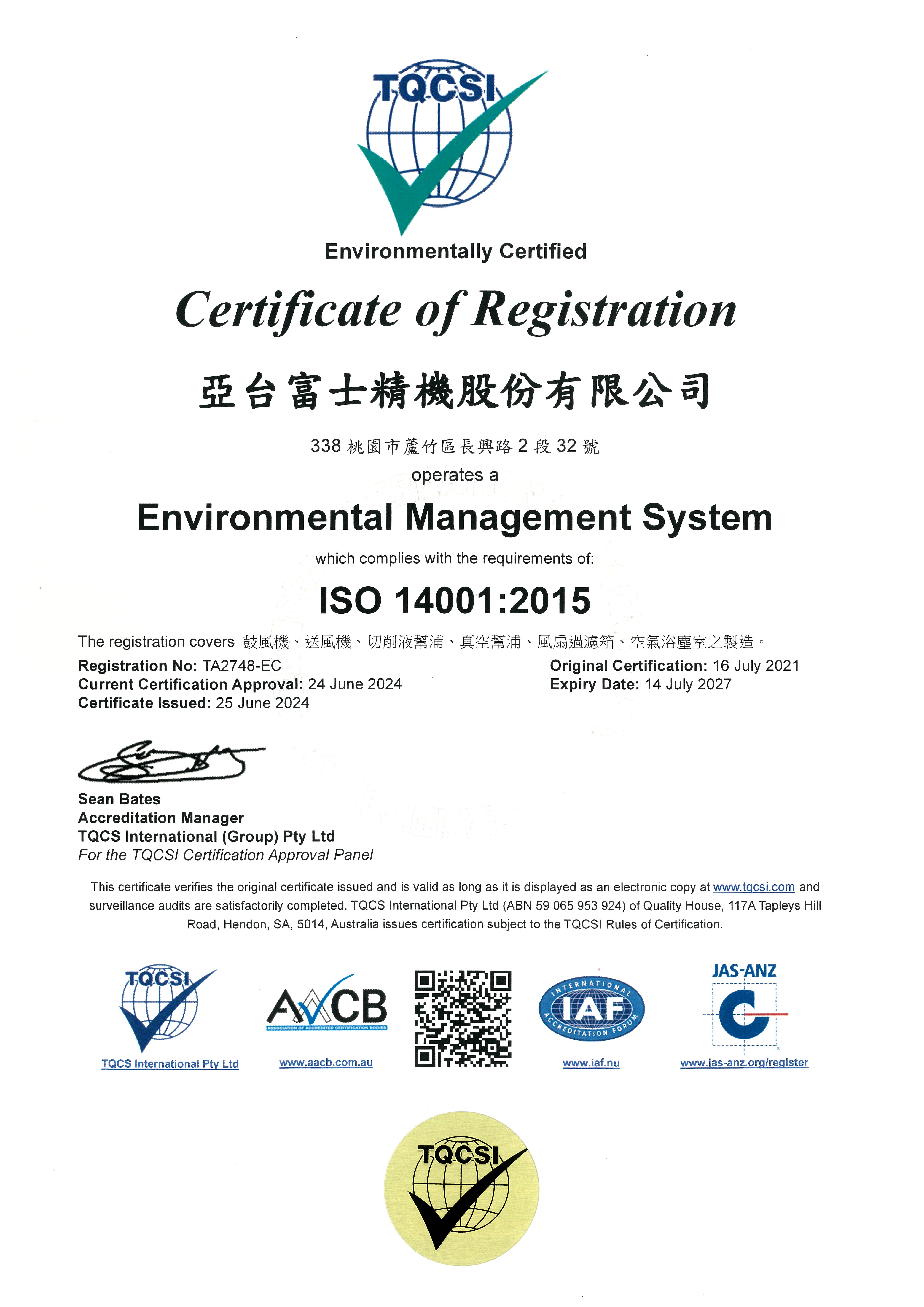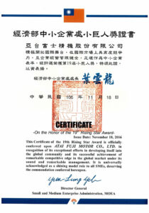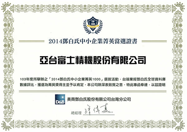 亞台富士具ISO9001及ISO14000之管理系統國際認證,並以此為準則,建立了完善的品質保證體制,自創立以來,以對品質要求零妥協的堅定態度,滿足每一位客戶對於高優質產品的期待,並對亞台的服務感到安心及信賴。