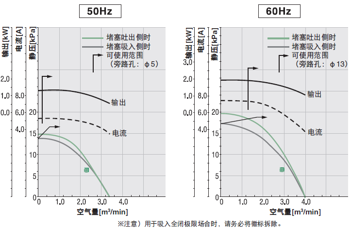 • 吸入全閉極限運轉型[50-60 型] 注意:用於吸入全閉極限用途時,安裝前,請務必將主體中間箱上的標徽拆除。直接帶標徽運轉時,可能會導致電動機絕緣老化燒壞。